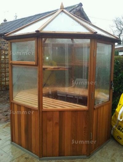 I am therefore highly delighted to find yours is a high quality product and when built; it is a strong and stable construction. The design is ideal for small garden corners such as mine and much more decorative than the conventional g/hse design.