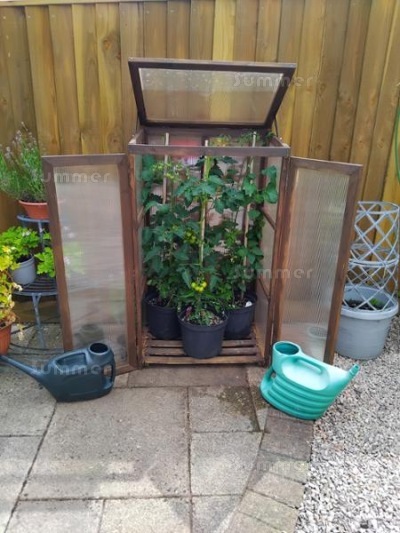 From deciding to look for it on Tuesday last week to it having three tomato plants inside it in my garden on Sunday, I couldn't be more pleased. A friend built it for me, taking less than an hour, and it's now looking very good. Further to my query about the shelves, I was very pleased to find that the two upper ones were totally removable, so that I can have the height to grow the tomatoes, and then put the shelves back in over the winter, which will strengthen the structure.