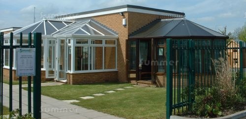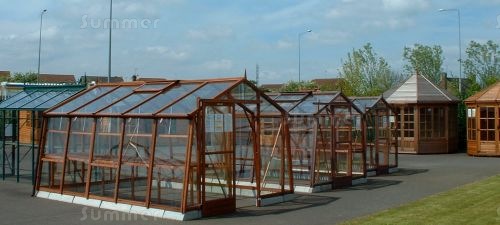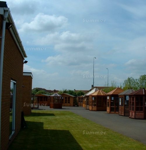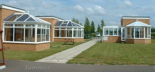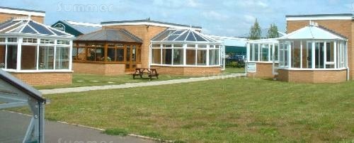 The Summer show centre at the Wyevale Garden Centre, Wootton, Northampton was originally built by "in house" bricklayers and carpenters who were normally employed to build conservatories. However, the entire garden centre was rebuilt soon afterwards and the original show centre was located exactly where the magnificent new garden centre entrance would be. The new entrance is pictured below.