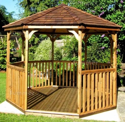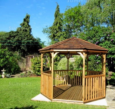 I have meant to write a review for ages but couldn't find an easy place to do so. We had the gazebo last June which my husband constructed over several incredibly wet days. The instructions were very clear but a cordless drill made life much easier. It is perfect and we have been so pleased with it. I have sat in it loads, even in the pouring rain but it allows me to watch our busy chickens. We spent a long time choosing your wooden gazebo but I am so glad that we did.