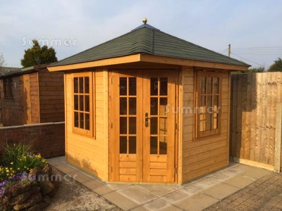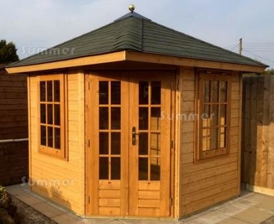 Last week I received delivery of my 6x6 red cedar summer corner house which I am delighted with .Although the accompanying erection instructions are far from the quality of the building but I am sure adequate .
