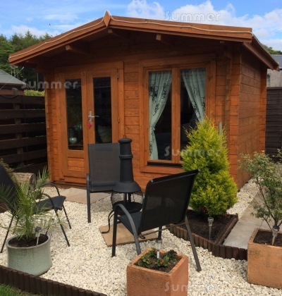 I would like to thank you for your help you gave me on the purchase of the log cabin, my reason for buying the log cabin as follows, i am disabled and i am house bound, my computer room was in the spare bed room and i did not have the room to work, all so we could not have family to stay over night. What a difference it makes, now that i am in the log cabin, it is double glazed, insulated, and all the elect points i need