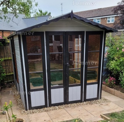 I purchased my Summerhouse from you, which was delivered in April, I just wanted you to know how very pleased I am with it. My son who is a carpenter erected it and found the instructions straight forward to follow, I am now enjoying my summerhouse and enclose a picture, I have painted inside too. Thankyou.