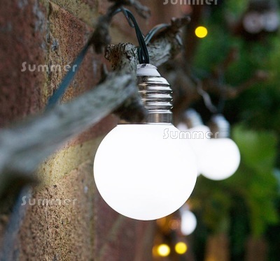 Decorative string lights automatically turn on at dusk. The string lights can be set to constant or flashing mode. String lights are especially popular with log cabins and garden rooms. Often the lights are stretched along the corners and edges of the roof and walls to frame the log cabin. String lights vary from small fairy lights which are decorative and the larger replica bulb style which provide more useful light when required.