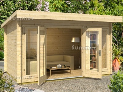 Many of our 2 room log cabins are designed with 2 rooms as standard, including apex, pent roof and corner designs. 2 room log cabins are often used to accommodate a summerhouse and a shed neatly under the same roof. The larger room normally features double hinged glazed doors for use as a summerhouse. The smaller room is normally designed as a storage area with a fully boarded door.