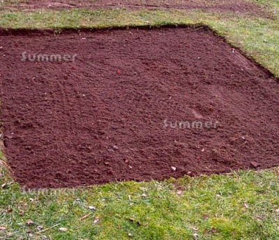 A tape measure should be used to mark out the area of the base. The corners can be marked with canes or bricks. To ensure that the area is square the two diagonal measurements should be the same. The edges are easier to cut with a straight edge such as a wooden plank and a spade or turf cutter. All vegetation and roots should be removed otherwise as the organic material decomposes the base may settle unevenly. Large trees should only be removed by professionals. Small trees and shrubs can be removed by untrained people if care is exercised. To remove turf cut horizontally using a spade just below the roots at a depth of around two inches.