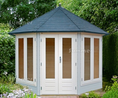 - A summerhouse is normally designed for seating and looking out on the garden, with large glazed doors and large windows.