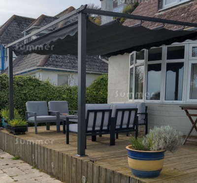 RETRACTABLE AND REMOVABLE SHOWERPROOF CANOPY: This gazebo features a retractable awning which can be folded away within seconds when not in use and pulled open just as easily. The canopy is also removable. At the end of the summer season the canopy should be removed for winter storage. The canopy should also be removed in windy weather. These simple measures will prolong the life of the canopy and protect your investment. The canopy is primarily a sunshade but it is also showerproof. It provides protection from light rain for a short period but some water ingress may occur during a prolonged downpour.