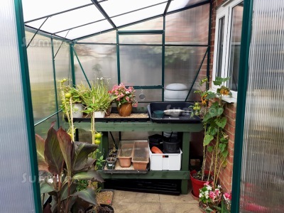 GREENHOUSE LOCATION: Ideally your greenhouse should have a clear space at least 18" wide on all sides, if possible. This ensures easy access for both installation and future maintenance. In reality this is often not practical and at many sites it is not needed. A reduced clearance is often possible on one or two sides. You should cut back or remove any nearby shrubs and trees. Remember to allow for future growth. The best position for a lean to greenhouse is against a south facing wall and outside the shadow of nearby buildings and trees. A sheltered position is best otherwise additional screening may be advisable. Polycarbonate glazing is not recommended at exposed sites. Plants need plenty of water so your greenhouse should be close to a water supply and the site should be well drained.